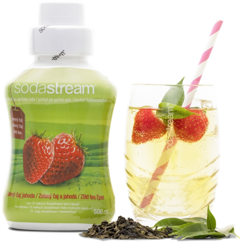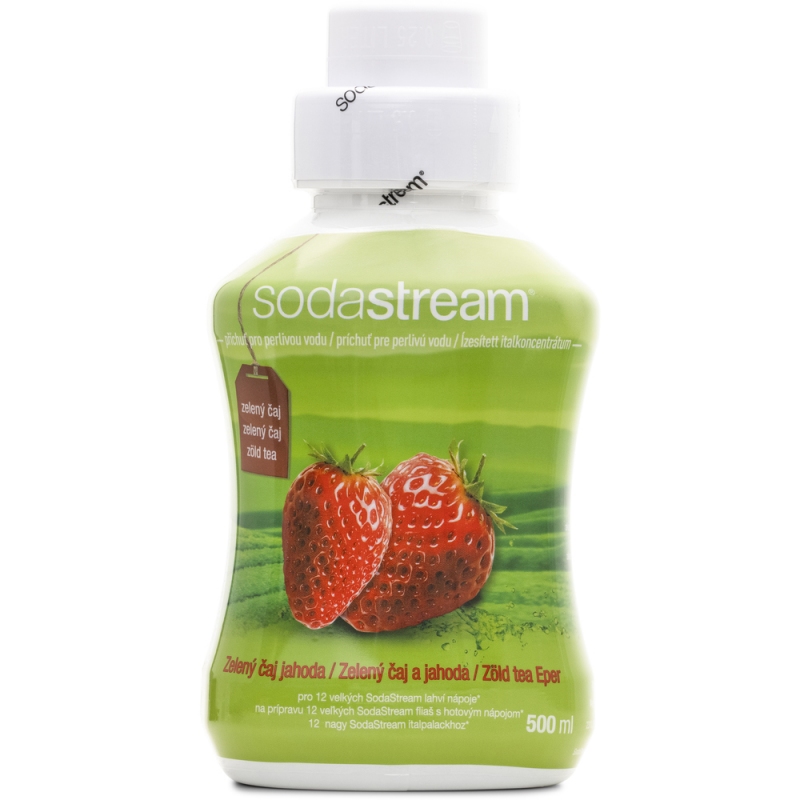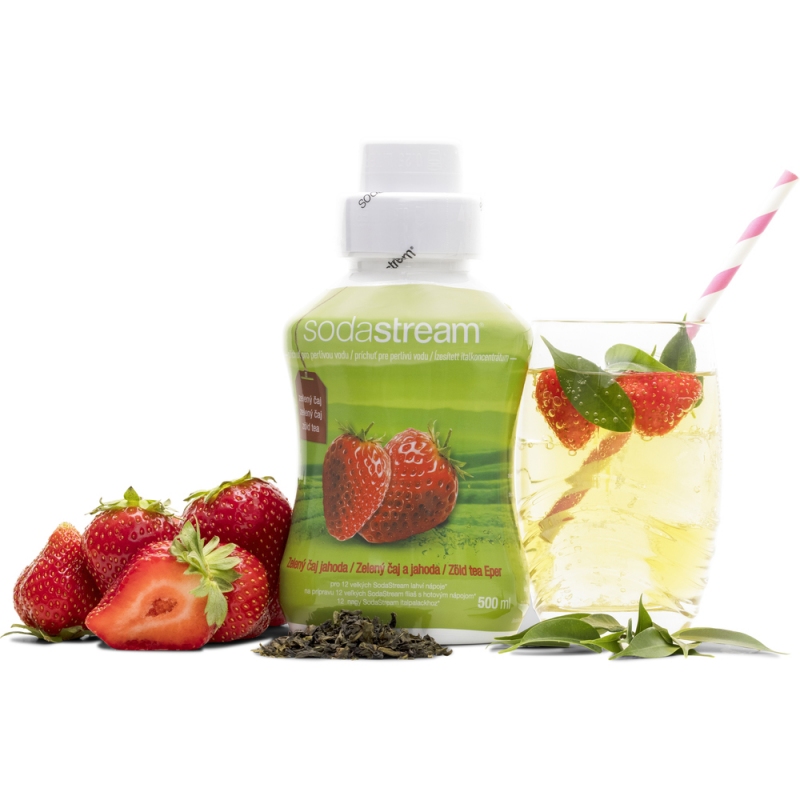 #EnterInformace o produktu#EnterOchucený nápojový koncentrát s výtažkem zeleného čaje, jahodovou šťávou (11,6%) z koncentrátu jahodové šťávy, cukry a sladidly#Enter500 ml příchutě vystačí až na 12 velkých lahví Sodastream#EnterDoporučený poměr ředění 1 díl koncentrátu a 20 dílů perlivé vody#EnterEnergie na 100 ml hotového nápoje: 67,7 kJ / 16,2 kcal#Enter