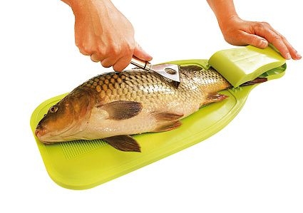 Praktické prkénko ke kuchání a čištění ryb. Pracovní plocha je opatřena hroty,které brání posuvu ryby. Klip s velmi silnou pružinou na upevnění ocasní ploutve. Prkénko je vybaveno 4 přísavkami na stůl. Rozměry: 45x13,5cm Vyrobeno z plastu. Barva dle dodání dodavatele.| Výrobce: | Orion |