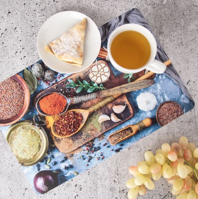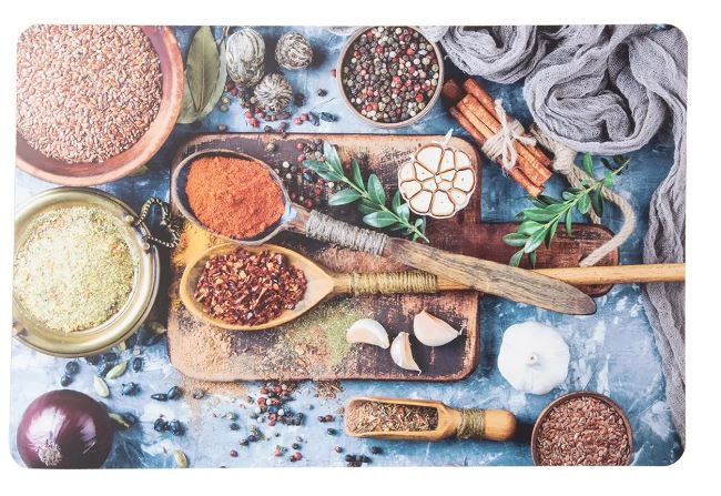 Prostírání s motivem koření ve výrazných barvách. Ochrání stůl nebo ubrus před ušpiněním. Rozjasní prostřený stůl. Materiál: plast PP. Rozměry: 43x28 cm.| Výrobce: | Orion |