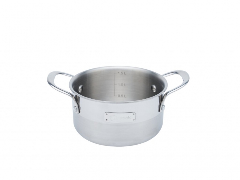 Nádobí Remoska Quanta je vyrobeno z materiálu kombinujícího teplotní vodivost hliníku a zároveň zdravotní nezávadnost a odolnost nerezového plechu. Objem: 1,5 l. Průměr hrnce: 16 cm. Výška: 9 cm.| Výrobce: | Remoska |