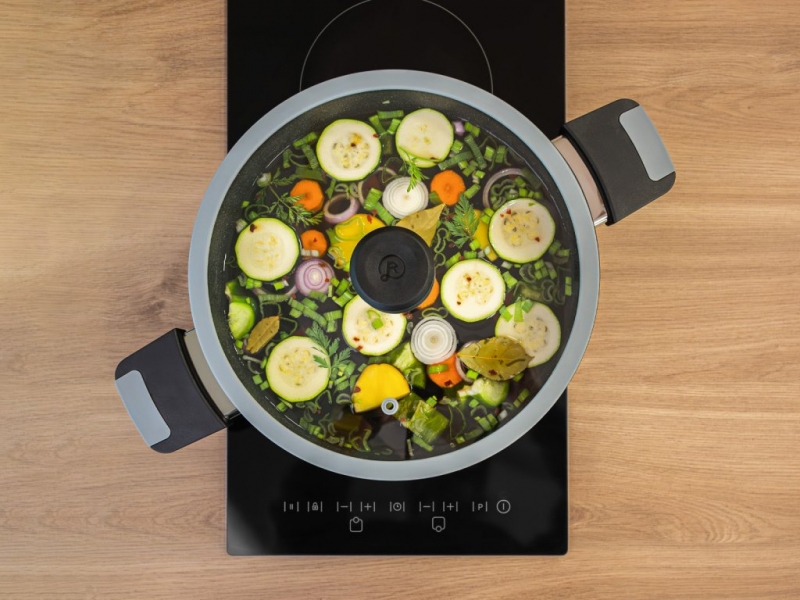 udržuje optimální teplotu pro pečení (160-180 °C) s příkonem pouhých 610 W. Oproti minulým modelům je navíc víko opatřeno odnímatelným kabelem zaručující ještě lepší skladovatelnost. Se skleněnou pokličkou se vaše Tria promění ve velký 4,5 l hrnec