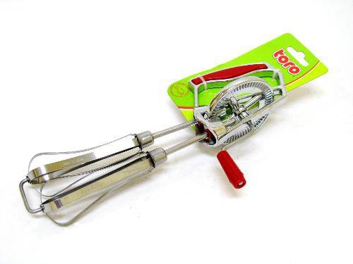 Šlehač ruční. Tento šlehač je vyroben z kovu a plastu. Je praktickým pomocníkem do Vaší kuchyně, na chatu či chalupu. S jeho pomocí můžete ušlehat těsto například na palačinky, vajíčka apod. Je opatřen kličkou, se kterou když budete točit, začnete šlehat. Rozměry: Délka: 25 cm| Výrobce: | U.T.C |