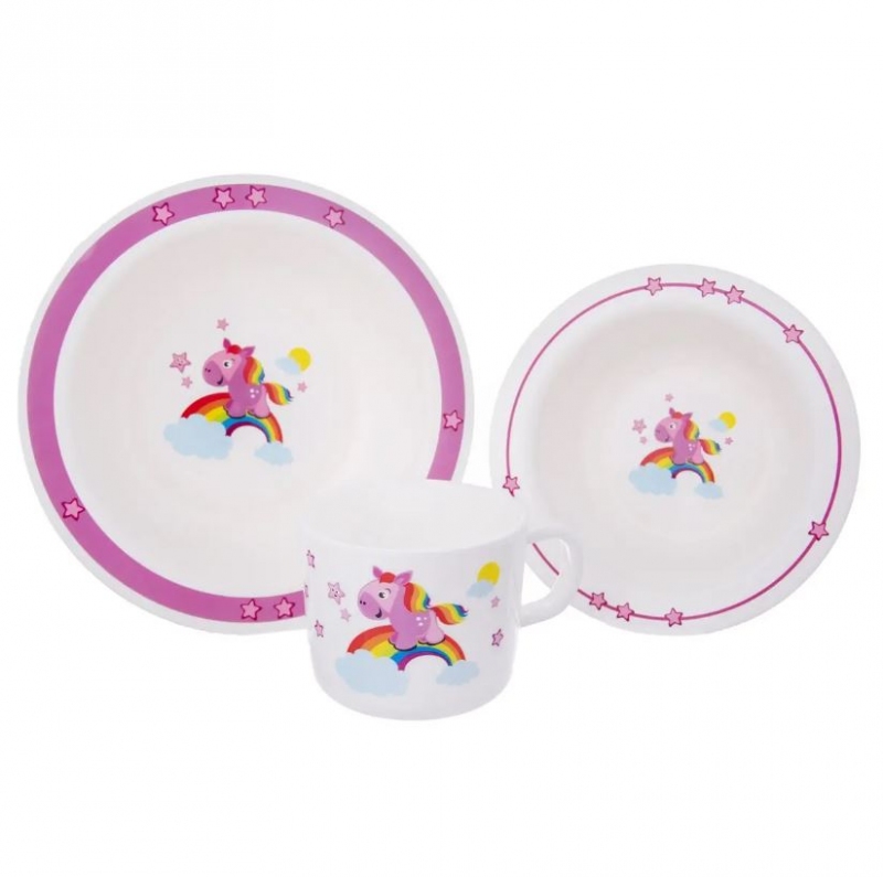 Jídelní sada s dětským dekorem obsahuje dvě hluboké misky a hrneček. Celý popis >