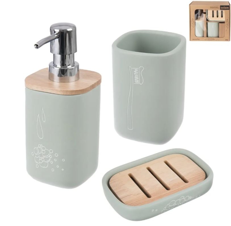 Sada koupelnová polyresin/gum. dřevo GREENISH 3 ks