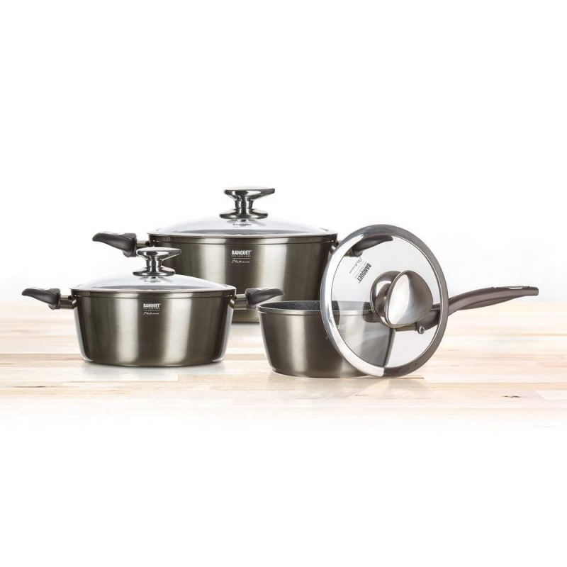 Sada nádobí s nepřilnavým povrchem METALLIC PLATIN