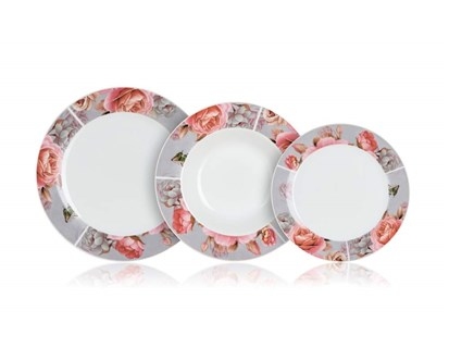 jídelní souprava 18 ks, bílá barva s dekorem, sada je vhodná do myčky na nádobí Celý popis >
