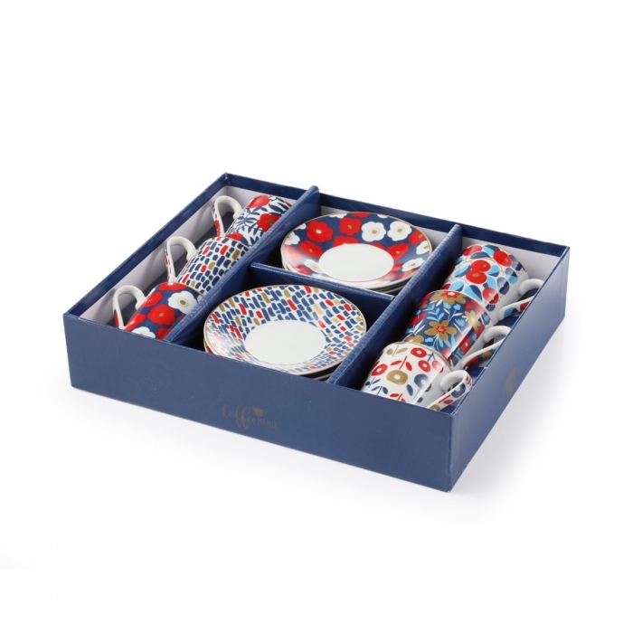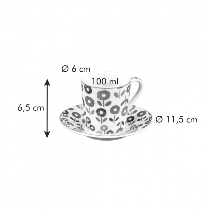 Šálek na espresso s podšálkem myCOFFEE, 6 ks, Flowers