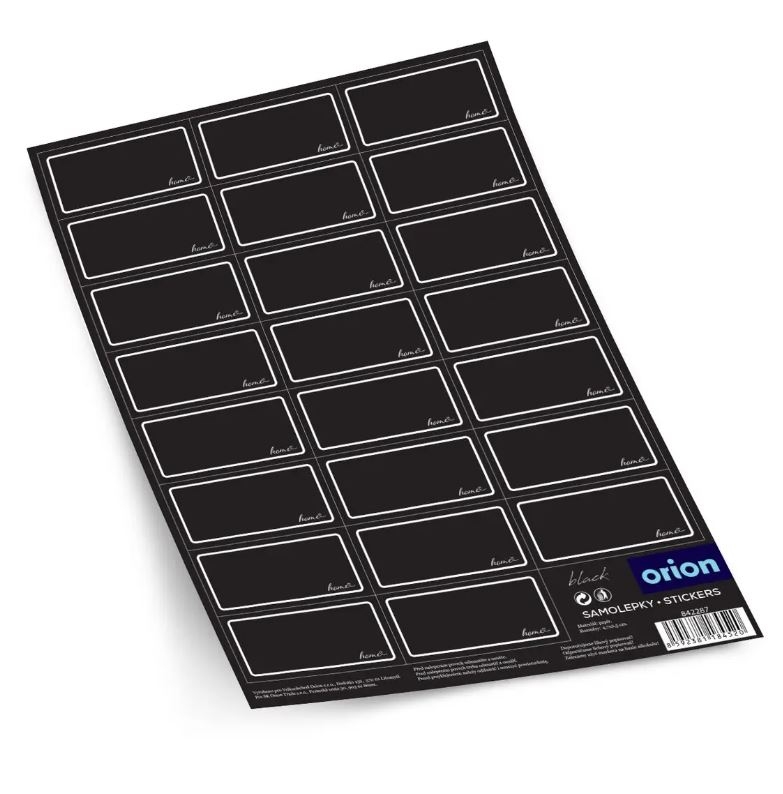 Samolepky na koření prázdné. Obdélníkový tvar. 23 samolepek. Černé. Rozměry: 1 samolepka 4,7x2,5 cm. Lze použít na dózy BLACK, na skleněné dózy, kořenky...| Výrobce: | Orion |