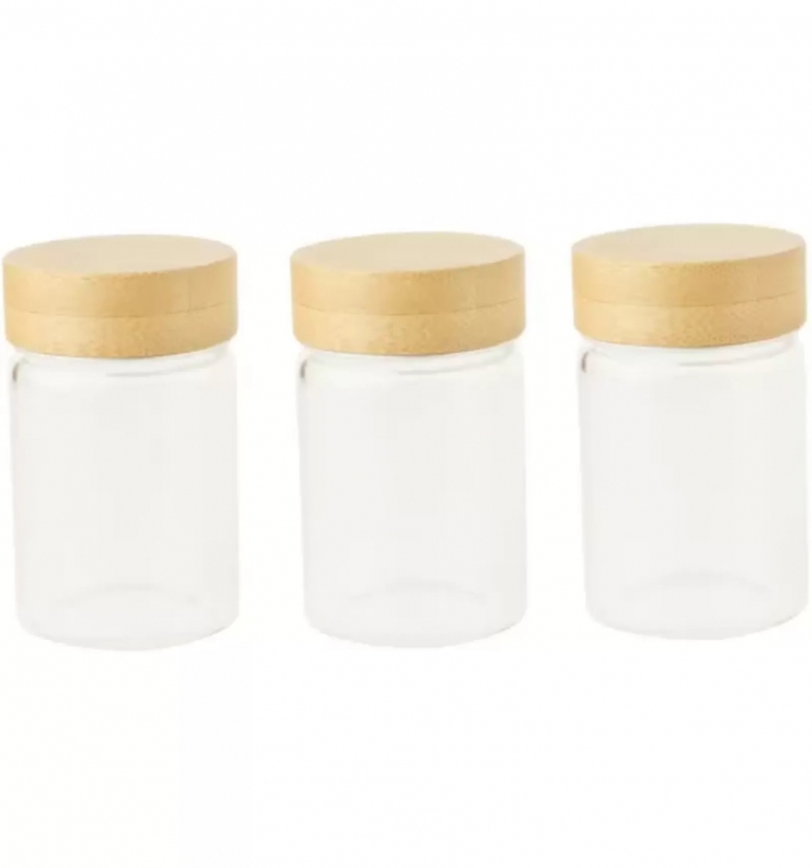 PEBBLY Set 3ks skleněná dóza na koření s bambusovým víkem 0,075 l