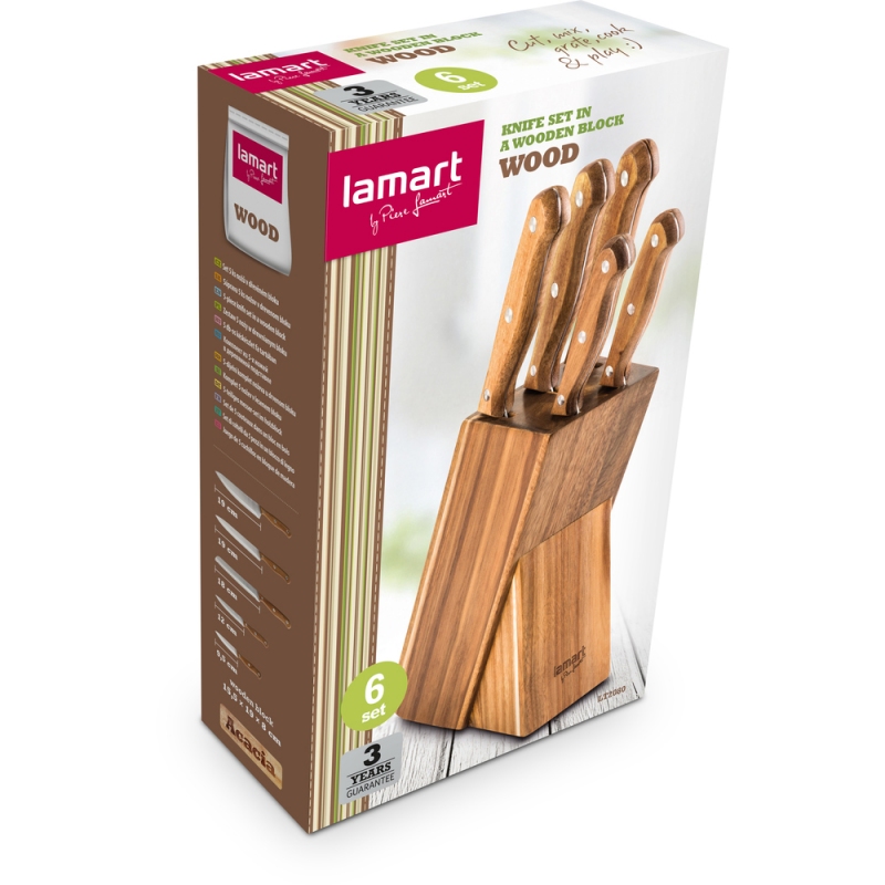SET 5 NOŽŮ V BLOKU WOOD LT2080 LAMART