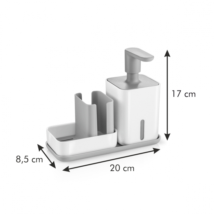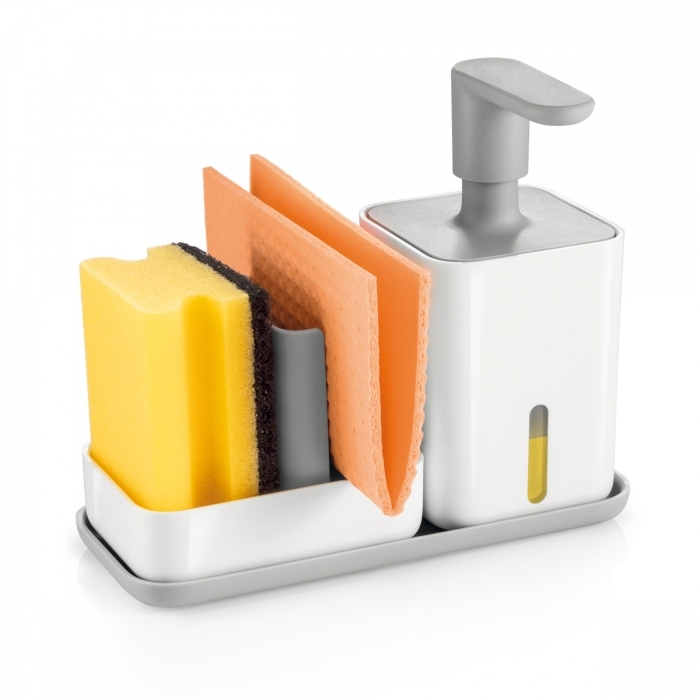 Set na mytí nádobí PURO zahrnuje: dávkovač saponátu PURO 400 ml, zásobník na houbovou utěrku a houbičku PURO, odkládací misku PURO| Výrobce: | Tescoma |