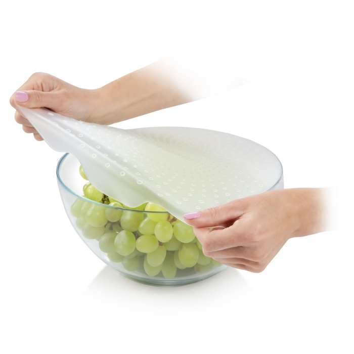 Pružné víko 4FOOD je univerzální, vhodné pro všechny běžně používané kulaté plastové, skleněné i kovové mísy a kulaté nádobí s hladkým okrajem.