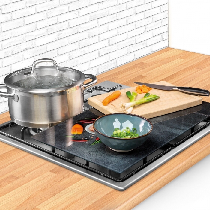 Díky pružným nožičkám, přísavkám a opěrkám skleněné odkládací desky nepoškodí hladký povrch varných desek a při použití jsou dokonale stabilní.