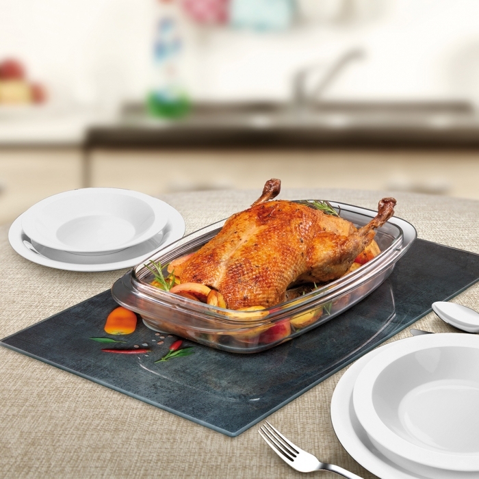 Skleněná deska ONLINE je univerzální, vhodná pro všechny druhy varných ploch, tedy pro sklokeramické, indukční, elektrické i plynové sporáky a varné desky.