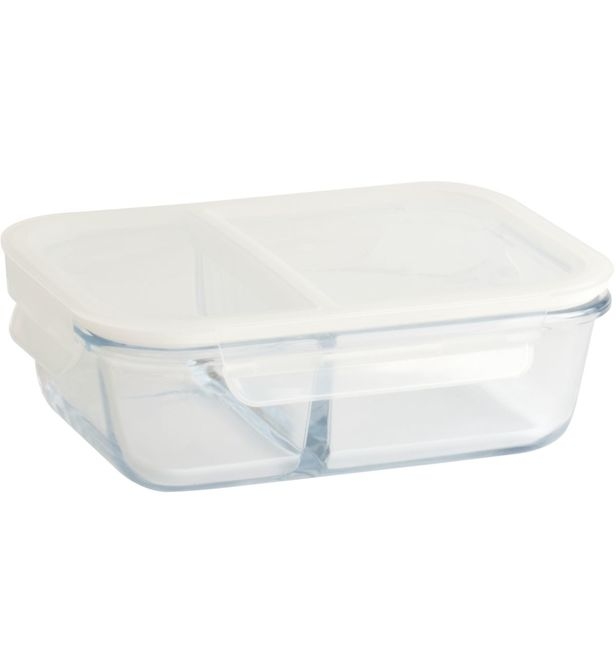 PEBBLY Skleněná vzduchotěsná obdélníková nádoba s přepážkou 950ml