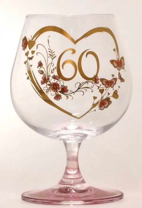 Elegantní jubilejní sklenice k narozeninám. Klasická dekorovaná výroční sklenice. Celý popis >