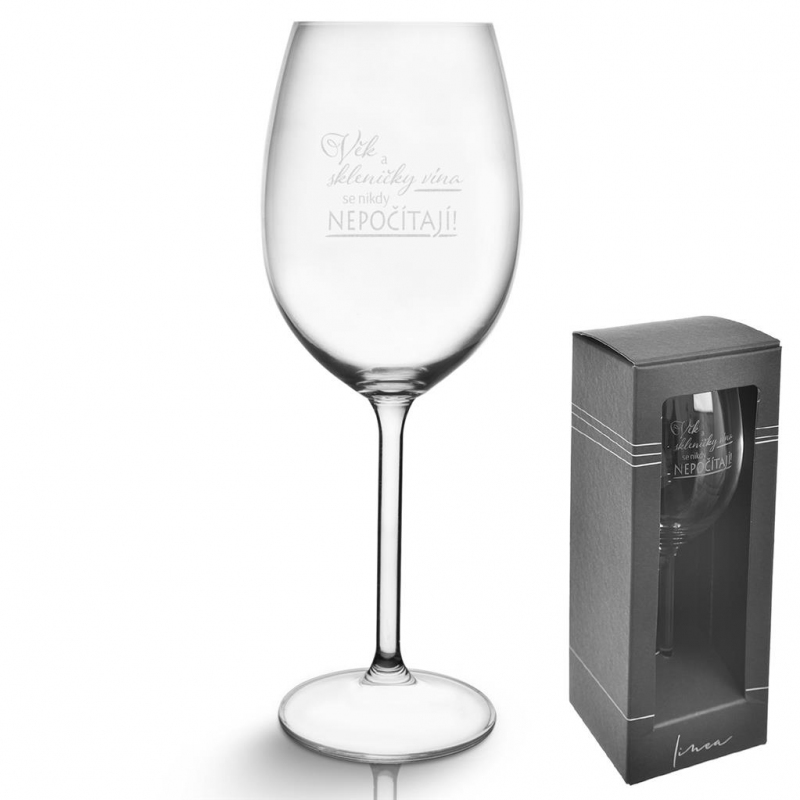 Sklenice na nožce na víno s dekorem VĚK. Celý popis >