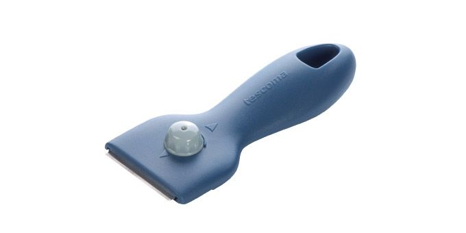 Snadno odstraní nečistoty ze sklokeramických varných desek, hladkých skleněných a porcelánových ploch apod. Vyrobeno z odolného plastu, čepel z prvotřídní nerezavějící oceli. Použití škrabky věnujte vždy zvýšenou pozornost, čepel je velmi ostrá, zabraňte dětem v manipulaci se škrabkou. Čistěte vlhkou utěrkou, nemyjte v myčce. Dodáváno s náhradní čepelí. 3 roky záruka. Použití: Čepel vysuňte do pracovní polohy a utáhněte pojistku. Sklokeramickou desku čistěte škrabkou pod úhlem cca 45 stupňů nebo menším, nepoužívejte nepřiměřenou sílu. Po použití čepel zasuňte zpět a utáhněte pojistku. Při odstraňování nečistot škrabkou nepoužívejte další čisticí prostředky. Výměna čepele: Škrabku otevřete zasunutím vhodného předmětu do otvoru na zadní straně rukojeti. Vyšroubujte pojistku, vyjměte šroub, vysuňte pouzdro čepele a čepel otočte nebo vyměňte za novou. Použití škrabky a výměně čepele věnujte vždy zvýšenou pozornost, zabraňte dětem v manipulaci se škrabkou. Výrobce nenese zodpovědnost za poškození čištěných ploch nesprávným použitím výrobku.