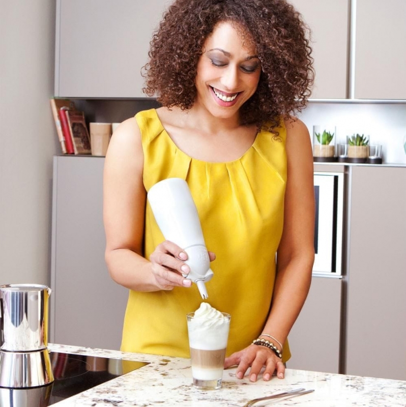 - Jednoduché použití: Ergonomický design pro snadné plnění a manipulaci. K našlehání obsahu je potřeba 1 šlehačková bombička.