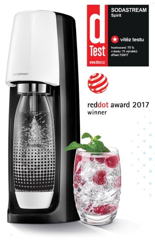 Pomocí sodovkovače si rychle a levně vyrobíte perlivou vodu či domácí perlivou limonádu. Atraktivní moderní vzhled a kvalitní zpracování jsou jen jedny z mála plusů tohoto výrobníku sodové vody. SodaStream Výrobník sodové vody Spirit B&W je vynikající pomocník do každé domácnosti. Předností přístroje Spirit je automatické uchycení lahve namísto šroubování a velmi tichá příprava perlivé vody. Tato značka zaručuje kvalitní výrobky. Vítěz dTestu. SodaStream Výrobník sodové vody Spirit B&W, klíčové vlastnosti: tichá příprava sodovky výrazná úspora nákladů oproti baleným vodám a limonádám ochrana životního prostředí - k výrobě stačí jedna láhev možnost vyrobit si sodovku jemně, středně nebo silně perlivou jednoduchým stisknutím tlačítka součástí výrobníku je uzavíratelná plastová láhev o objemu 0,9 l, která neobsahuje škodlivý uhlovodík BPA (nesmí se mýt v myčce nádobí) láhev lze skladovat v chladničce automatické uchycení láhve bez šroubování vyroben z prvotřídních hygienicky prověřených materiálů s bombičkou lze připravit až 70 l šumivého nápoje použití pouze s bombičkou CO2 1 ks bombičky je součástí balení Výměna prázdné bombičky je možná pouze v naší kamenné prodejně v Příbrami.
