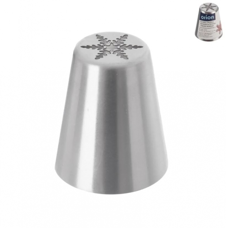 Špička zdobicí ruská – malá vločka. Využijete ji na zdobení dortů a zákusků krémem. Materiál: nerez (304 s/s). Rozměry: pr. 2,2 cm, v. 4,2 cm. Lze mýt v myčce. Celý popis >