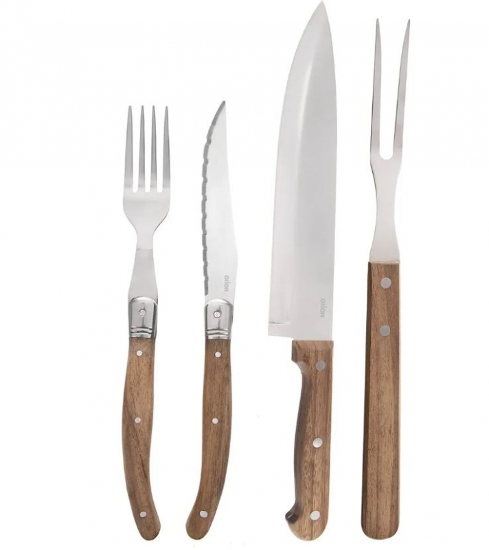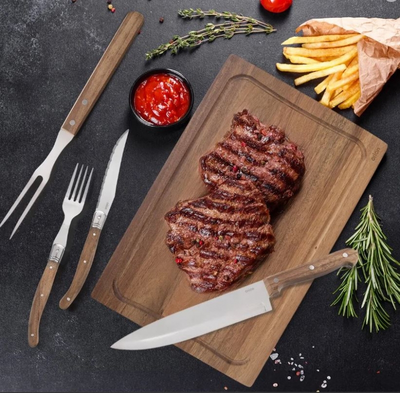 Steak set nůž+vidlička+vidlice nerez/dřevo