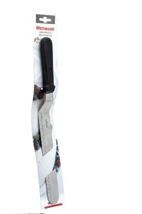 Zahnutá stěrka je ideální pro rovnoměrné nanášení máslového krému, polevy a ganache na koláče, dorty a pečivo. Můžete ji také použít na krájení dortových a zákuskových korpusů. S leptanou stupnicí do 18 cm vždy snadno najdete tu správnou míru. Pohodlná rukojeť se zářezem pro prsty umožňuje pevné uchopení a přesnou práci. Rozměry: 387 x 35 x 19 mm. Materiál: plast, nerezová ocel.| Výrobce: | Westmark |