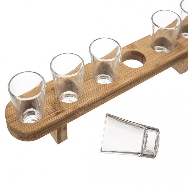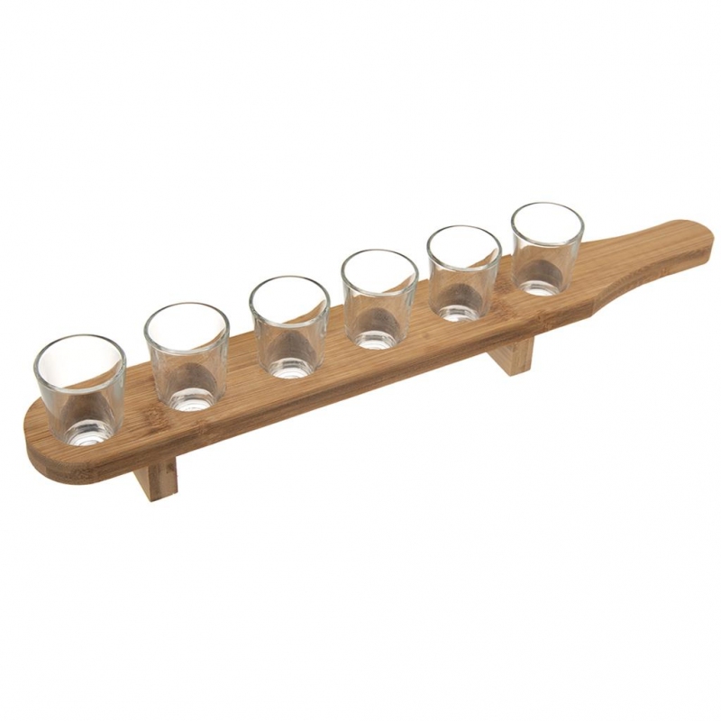 Stojan bambus+odlivky sklo 6 ks