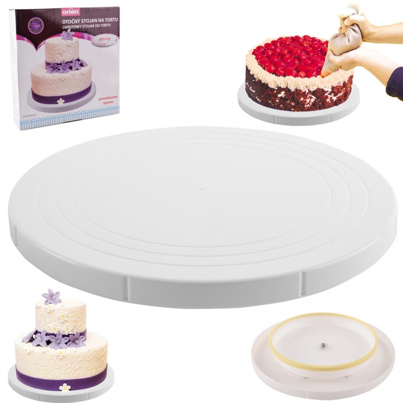Otočný stojan na dort Vám pomůže dort snadno a rychle ozdobit. Díky otáčení budete mít zdobení v jedné rovině. Na táce dort rovnou servírujete. Materiál: plast. Barva bílá. Rozměry: pr. 27 cm, v. 4 cm.| Výrobce: | Orion |