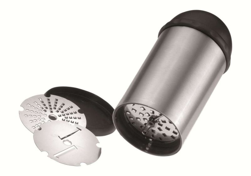 Válcové nerezové struhadlo se třemi vyměnitelnými břity na sýr, čokoládu a ořechy Celý popis >