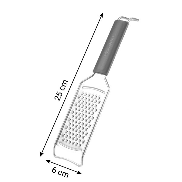 Struhadlo je vynikající pro snadné strouhání potravin, ideální pro sýry, kořenovou zeleninu apod. Struhadlo lze použít pro strouhání v ruce nebo na ploše. Očko na konci rukojeti pro zavěšení struhadla slouží zároveň jako stabilní opěrka při použití na ploše. Materiál: odolný plast, sítko z prvotřídní nerezavějící oceli. Čištění: vhodná do myčky, před čištěním sejměte z lopatky uzávěr. Záruka: 3 roky.| Výrobce: | Tescoma |