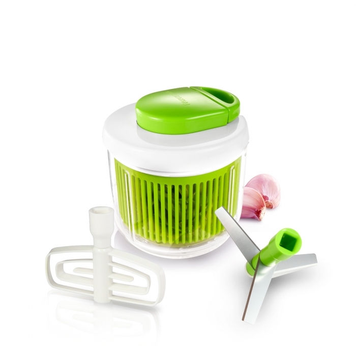 Čištění: Po použití sekáček opláchněte pod tekoucí vodou, miska s čepelemi je vhodná do myčky, víko se strunou čistěte pouze pod tekoucí vodou, nenechávejte odmočit. Materiál: nerezavějící ocel a odolný plast.