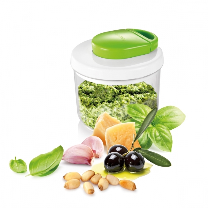 Naseká potraviny na požadovanou hrubost, odstředí salát i bylinky a vyšlehá dresinky či tekutá těsta. Celý popis >