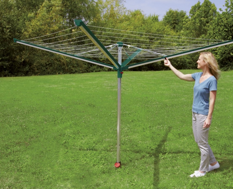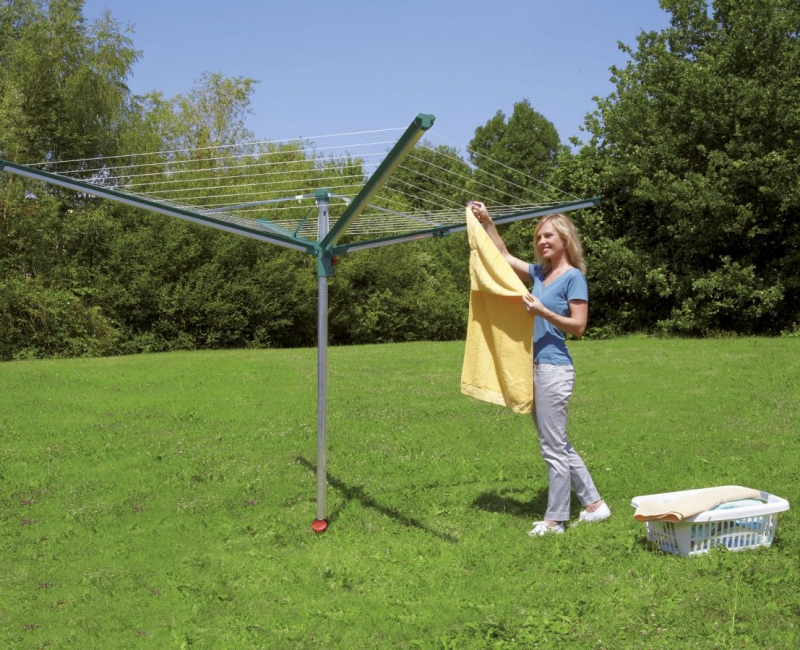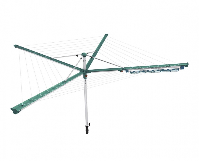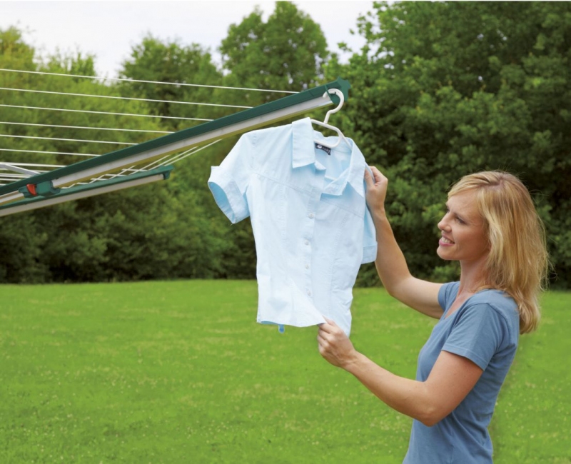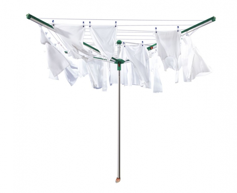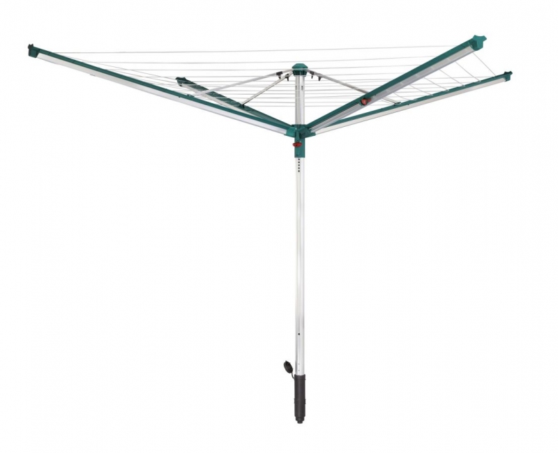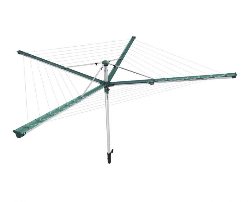 Venkovní sušák na prádlo Linomatic 400 Deluxe Leifheit. Nyní má tento sušák snazší otevírání a zavírání. Jedná se o vylepšenou verzi modelu L 400 – má navíc celistvé meziramenní zakryté, které zabraňuje vniku vody do nitra sušáku při špatném počasí a super rychlé složení bez ohýbání stiskem pojistky na rameni sušáku. Je jedním z nejlepších venkovních sušáků prádla na trhu. Jeho největší výhodou je automatické svinování šňůr do konstrukce, jsou tedy chráněny před zašpiněním nebo zamotáním. Venkovní sušák je díky délce šňůry 40m, vhodný pro 4 pračky prádla. Délka strany sušáku je 1,86 m a rozpětí ramen 3,03m. Hlavním materiálem je kvalitní hliník a tvrzený plast v zelené barvě. Zahradní sušák lze ukotvit přímo do betonu pomocí plastového pouzdra, které je součástí balení celková délka šňůr 40 m délka strany 1,86 m, rozpětí 3,03 m vyrobeno z hliníku a plastu patentovaný systém zatahování šňůr do bočnic standardně dodáváno s plastovým držákem k trvalému upevnění do betonu barevná provedení: hliník + zelené plasty