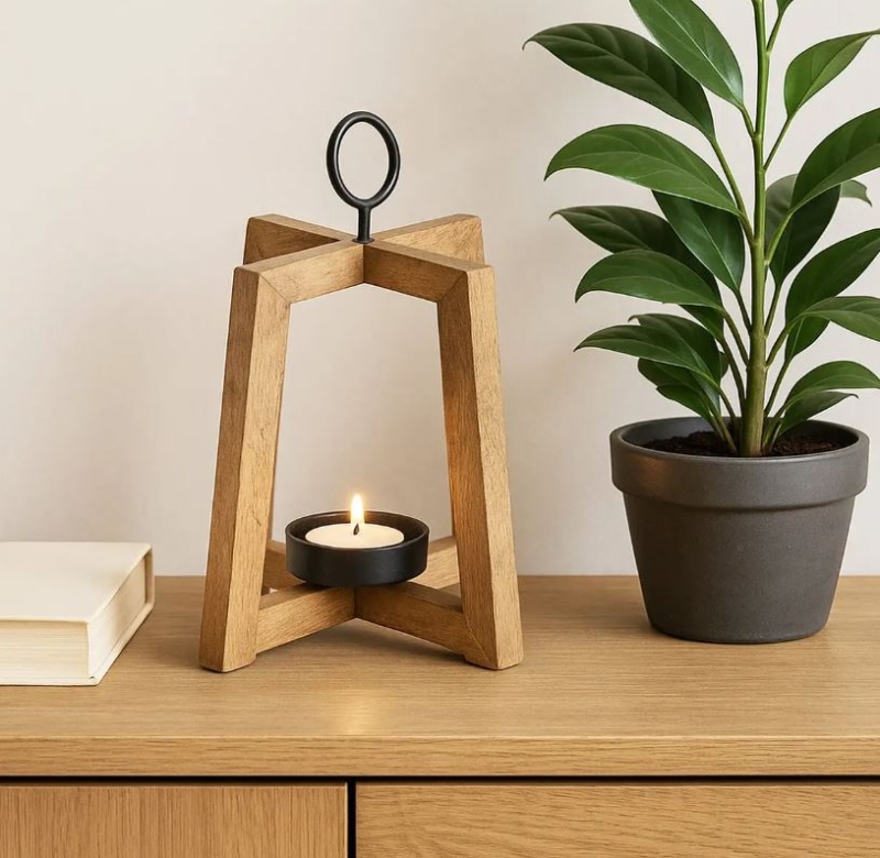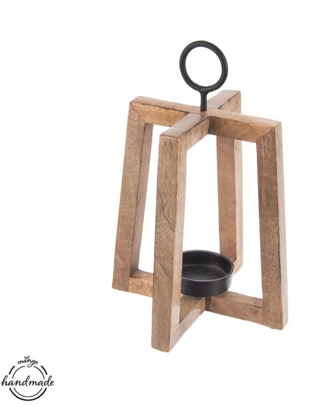 Svícen dřevo/kov MANGO otevřený v. 27 cm