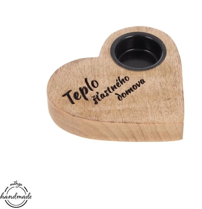 Svícen dřevo/kov MANGO srdce, domov
