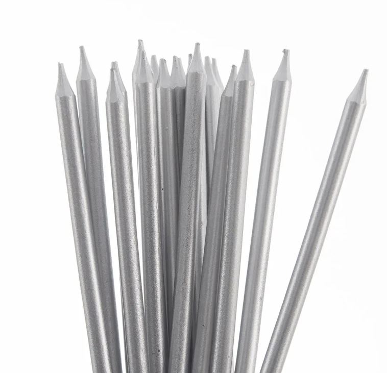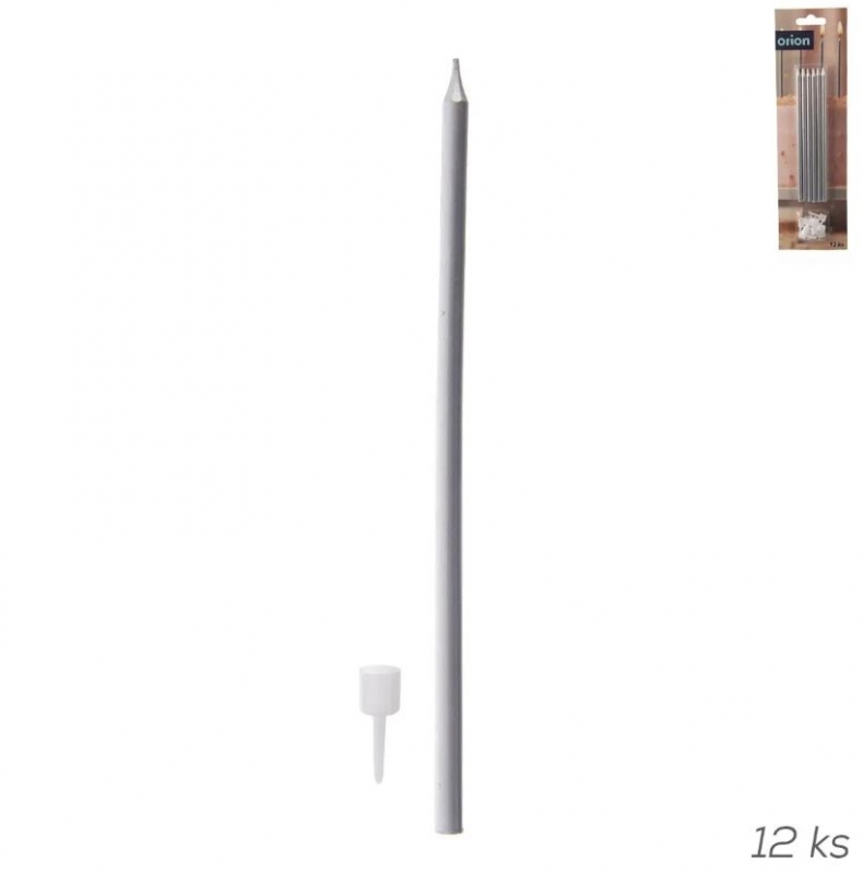 Svíčka dortová 12 ks 14,5 cm stříbrná