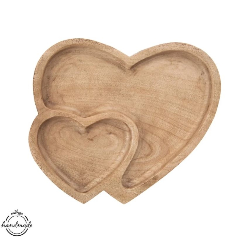 Tác dřevo MANGO srdce 23x20 cm dělený