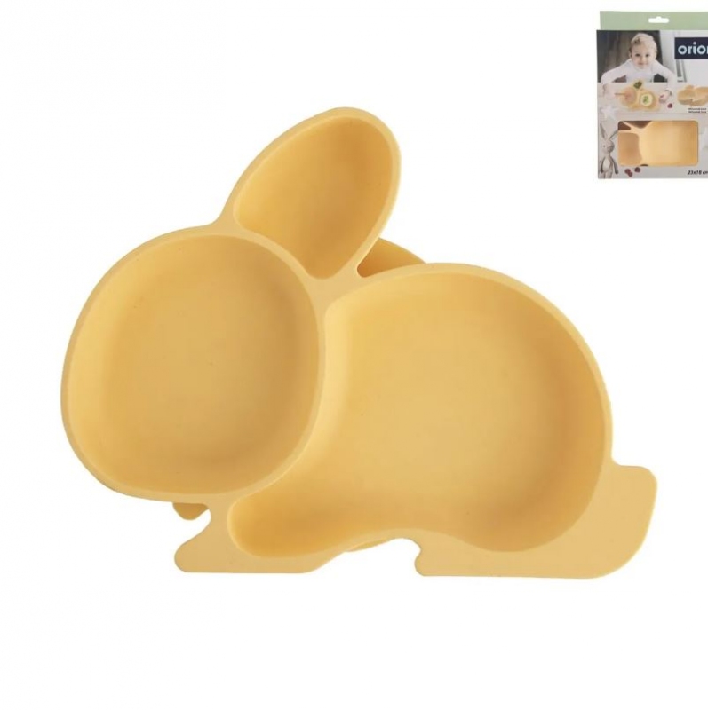 Talíř silikon dětský dělený zajíček 23x18 cm žlutá