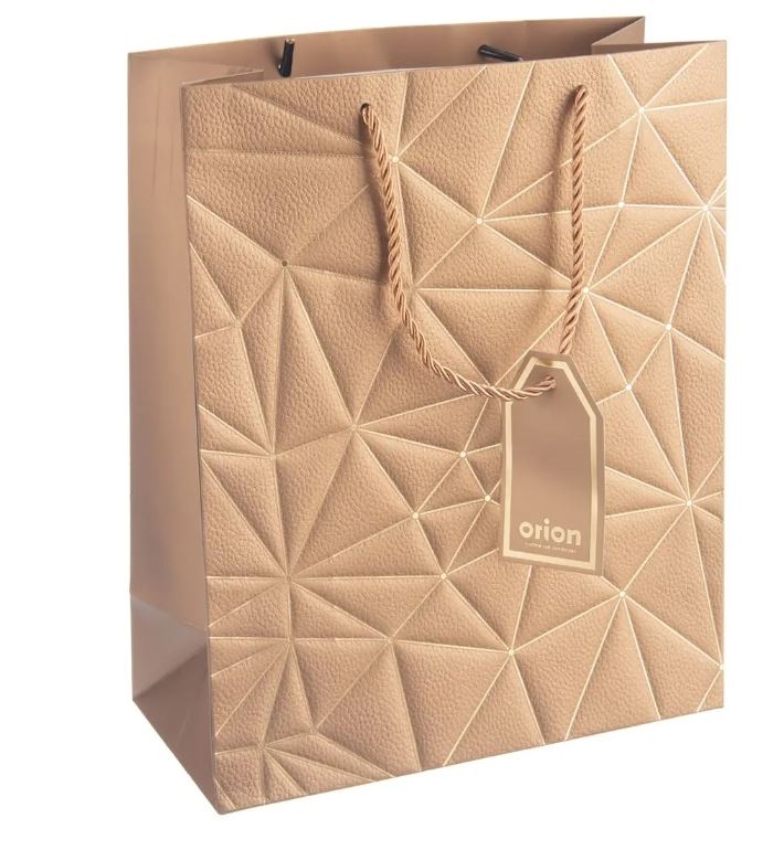 Dárková taška se dvěma uchy, plastický dekor, na přední straně zdobená zlatými linkami, doplněna jmenovkou. Celý popis >