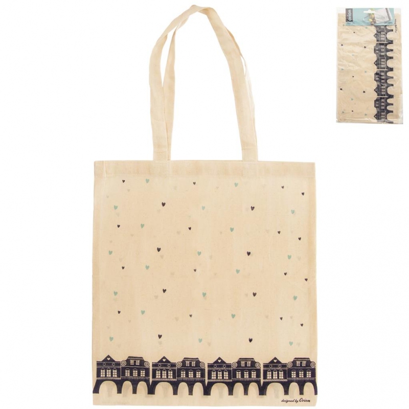 Orion Taška nákupní bavlna Eko DOMKY 38x42 cm