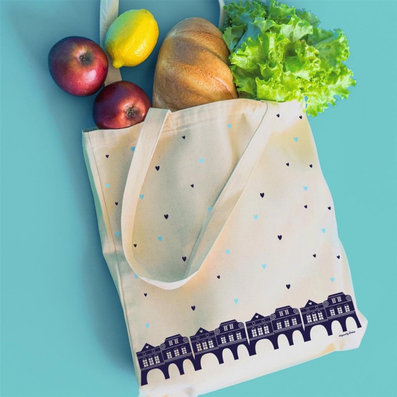 Bavlněná nákupní taška s dekorem DOMKY. Celý popis >