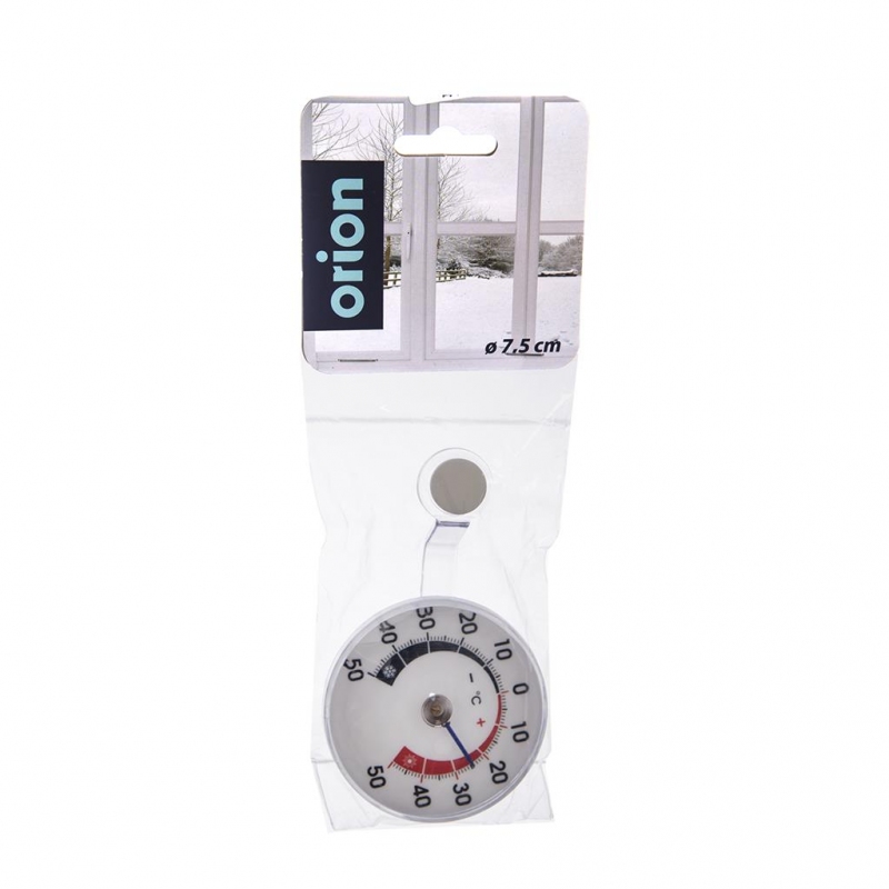 Teploměr venkovní mechanický připevníte pomocí samolepky na okenní tabuli zvenčí, nemusíte vrtat do zdi. Materiál: plast. Stupnice od - 50 °C do 50 °C. Rozměry: pr. 7,5 cm.| Výrobce: | Orion |