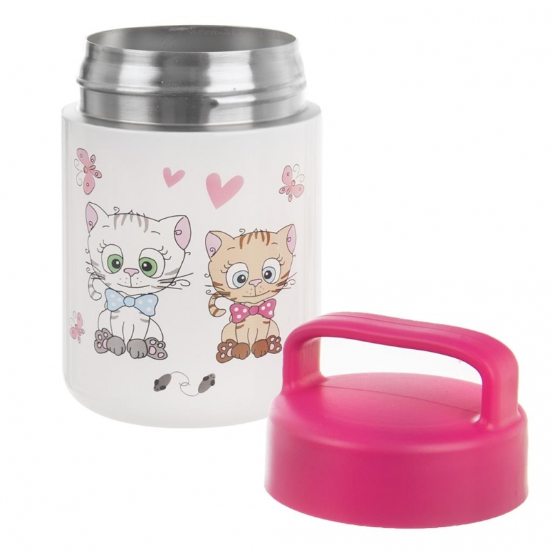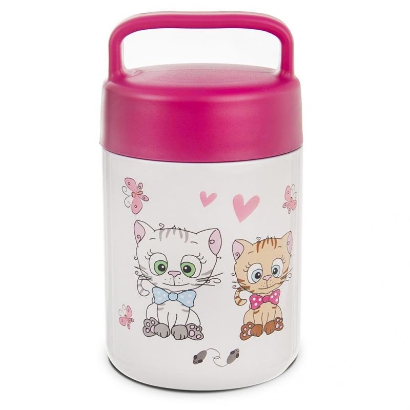 Termonádoba Orion s motivem kočiček. Průměr 8,5 cm, výška 15 cm, celkový objem 0,48l (užitný objem 0,42l). Celý popis >