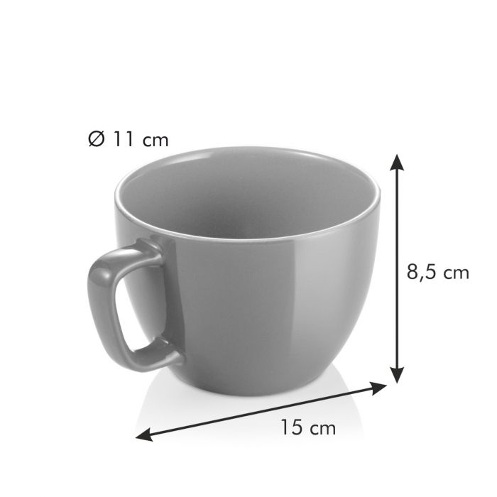 Šálky a hrnky z řady CREMA SHINE od Tescomy vynikají svou atraktivní dvoubarevnou glazurou, prvotřídní kvalitou a možností různých kombinací velikostí a barev. Na výběr máte z šesti barevných kombinací. Můžete si tak kombinovat šálky a hrnky dle svého vkusu, nebo sjednotit a sladit barvy do určitých tónů s vaší kuchyní či kanceláří. Správné barvy si můžete také vybrat dle jejich působení na člověka, červená dodává odvahu a energii, žlutá rozveseluje a oživuje paměť, modrá přináší inspiraci, uklidňuje a zlepšuje soustředěnost, zelená je barvou rovnováhy a načerpání nových sil, lila symbolem spirituality a růžová představuje něhu a romantickou lásku. Díky čtyřem různým velikostem si můžete vytvořit kompletní a ucelenou sadu hrnků a šálku ve Vaší domácnosti. Jsou vhodné pro horké, ale i studené nápoje. Díky odolné lesklé glazuře jsou vhodné do myčky i mikrovlnné trouby. Tescoma Crema shine Hrnek velký 590 ml je určen pro atraktivní servírování oblíbeného čaje, horké čokolády se šlehačkou, kakaa, smoothie či vody s bylinkami a citronem u Vás doma, na zahradě nebo třeba v kanceláři. Šířka hrnku s uchem je 15 cm. V případě zájmu o konkrétní barvu ji uveďte do poznámky v objednávce.