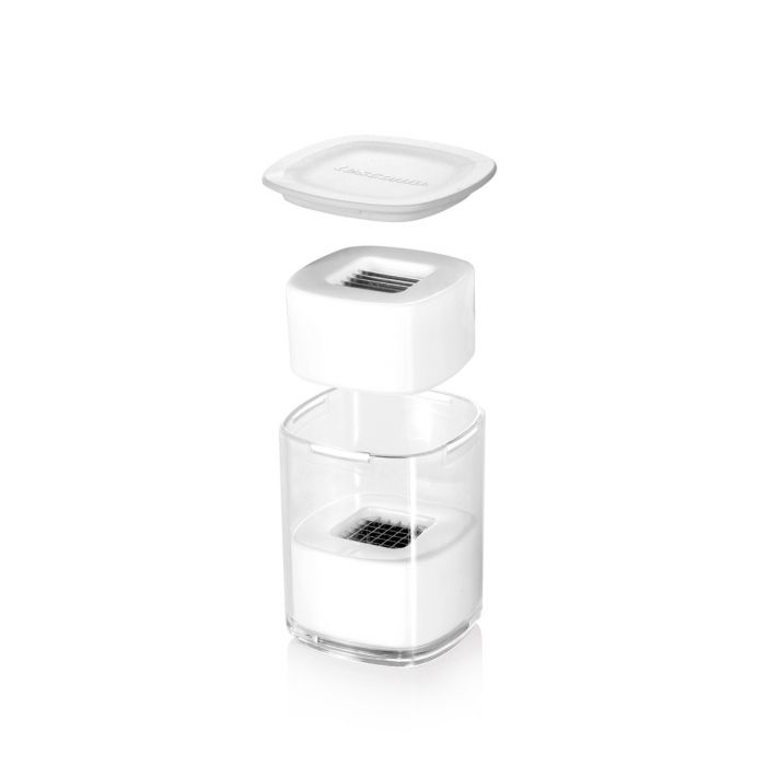 Již žádné krájení a pracné lisování česneku, tento inovativní lis na česnek Vám velmi usnadní lisování česneku a nejen to. Tescoma Handy Lis na česnek 2 čepele zvládne nakrájet česnek na plátky a dokonce i na kostičky. Lis je vyroben z prvnitřídních a odolných materiálů. Princip je jednoduchý, již žádné používání síly při lisování česneku, stačí pouze otáčet rukojetí. Dvě čepele (na kostičky a na plátky) jsou uloženy v zásobníku s oboustranným čistítkem a stěrkou. Lis je skvěle skladný, lze jej totiž skladovat se zásobníkem na čepele. Čištění je také snadné, stačí lis rozložit a stěrkou odstranit zbytky česneku, lisovací otvory vyčistíte krátkými trny čistítka, naopak nerezové čepele dlouhými trny. Poté se lis opláchne pod tekoucí vodou a nechá důkladně osušit.