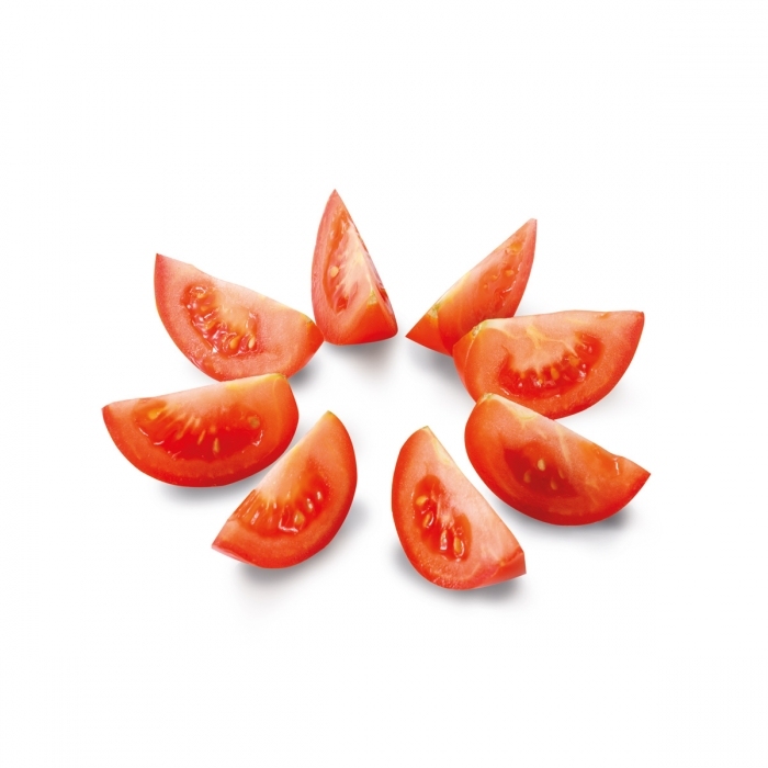 #EnterPostup: Kráječ položte na střed rajčete a mírným tlakem kolmo dolů naporcujte. Spodní část rajčete rozkrojte kolébavým pohybem kráječe. Kráječ není vhodný na porcování velmi měkkých a přezrálých rajčat.