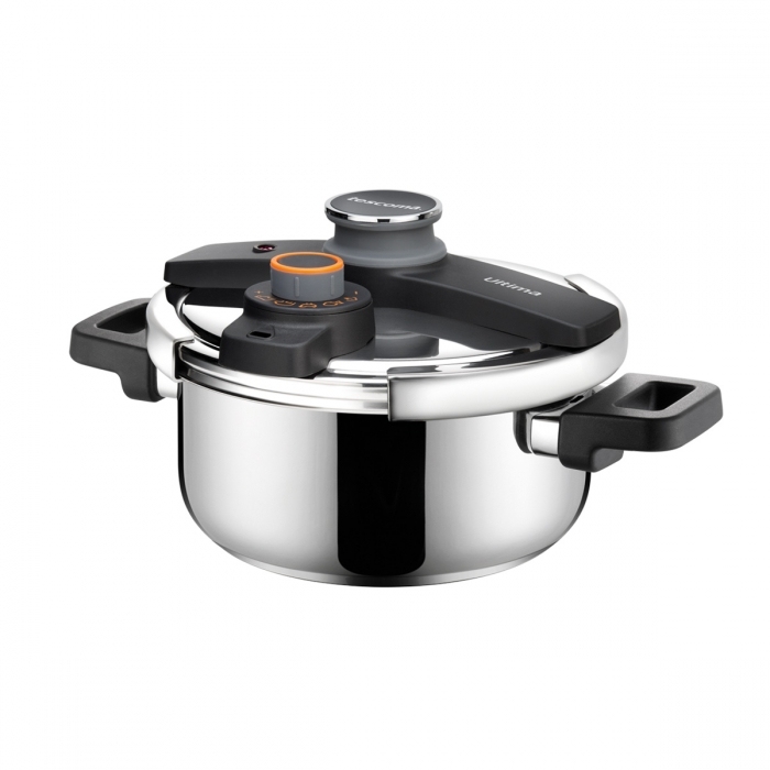 Tlakový hrnec je skvělým pomocníkem v každé kuchyni, protože je s ním vaření rychlejší, zdravější a úspornější. Pokrmy během vaření v tlakovém hrnci neztrácí tolik vitamínů jako při klasickém vaření a pokrmy jsou chutnější. Testoma Ultima+ Tlakový hrnec 4 l je opatřen technologií nastavení ideálního tlaku IDEALCOOK pro rychlou a šetrnou přípravu všech pokrmů. Navíc je jeho povrch nepřilnavý Tescoma Ultima Tlakový hrnec 4 l, klíčové vlastnosti: snadné otevírání i uzavírání hrnce jen jednou rukou díky velkému otočnému uzávěru opatřen indikátorem tlaku 4 bezpečnostní pojistky masivní úchyty z odolného plastu na víku intuitivní nastavení tlaku s graficky znázorněnými druhy masa pro vytvoření ideálního tlaku (ryba, drůbež, vepřové nebo hovězí maso). hrnec je opatřen stupnicí třívrstvé sendvičové dno s vynikajícím rozvodem tepla vhodný na všechny typy varných desek včetně indukčních vyroben z prvotřídní nerezavějící oceli a vysoce odolného plastu samotný hrnec lze mýt v myčce, víko se nesmí nikdy mýt v myčce! v hrnci nepoužívat kuchyňské nářadí z kovu, ostré předměty, nože apod dodáván bez nerezového napařovacího síta