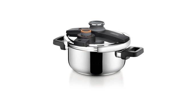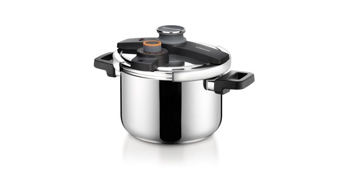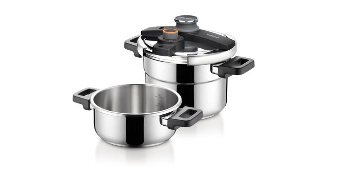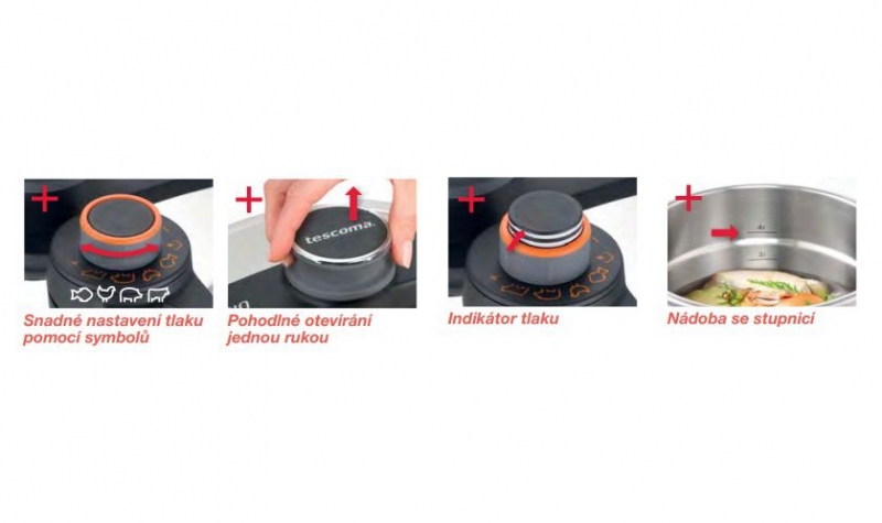 Tlakový hrnec by neměl chybět v žádné kuchyni, vaření v tlakovém hrnci je rychlejší, zdravější a úspornější. Pokrmy během vaření v tlakovém hrnci neztrácí tolik vitamínů jako při klasickém vaření a pokrmy jsou chutnější. Tescoma Ultima Tlakový hrnec Duo 4 a 6 l je opatřen technologií nastavení ideálního tlaku IDEALCOOK pro rychlou a šetrnou přípravu všech pokrmů. Tato výhodná sada obsahuje dvě nádoby a jednu univerzální poklici. Tescoma Ultima Tlakový hrnec Duo 4 a 6 l, klíčové vlastnosti: snadné otevírání i uzavírání hrnce jen jednou rukou díky velkému otočnému uzávěru opatřen indikátorem tlaku 4 bezpečnostní pojistky masivní úchyty hrnec je opatřen stupnicí třívrstvé sendvičové dno s vynikajícím rozvodem tepla vhodný na všechny typy varných desek včetně indukčních intuitivní nastavení tlaku podle symbolů vyroben z prvotřídní nerezavějící oceli a vysoce odolného plastu samotný hrnec lze mýt v myčce, víko se nesmí nikdy mýt v myčce! součástí balení je celonerezové napařovací síto pro přípravu například ryb či zeleniny získal prestižní německou cenu Red Dot Design Award 2017 vnitřní průměr 22 cm, vnější průměr 24 cm, šířka s úchyty 37 cm