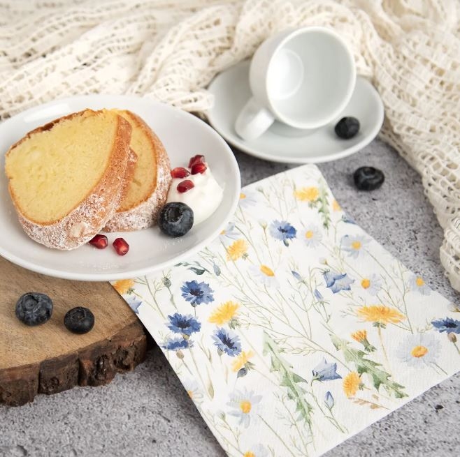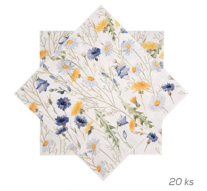 Ubrousek papír jarní květy 20 ks 33x33 cm modrá